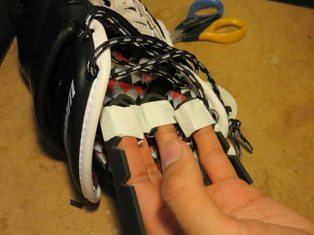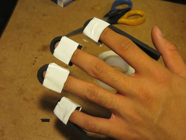 Con los insertos todavía Unidos a los dedos, presione suavemente los insertos en cada dedo del guante. Para los más pequeños guantes, hacer cada dedo por separado.