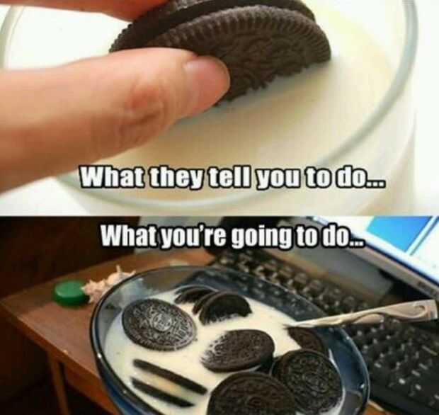 Galletas Oreo es realmente bueno! Mayoría de la gente le diría para mojar en la leche, pero podría hacer cereal Oreo, verter leche en un bol con una cuchara y plop en algunos Oreos, y ahora tienes cereales Oreo