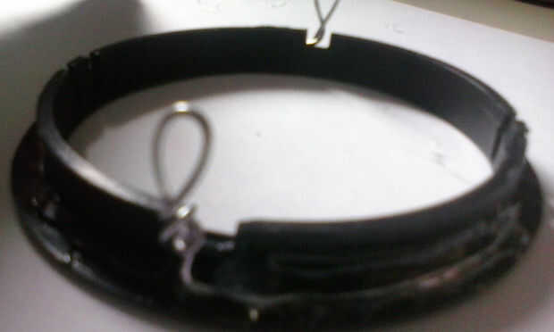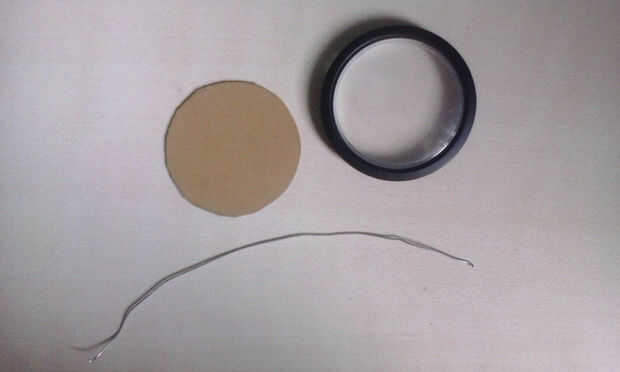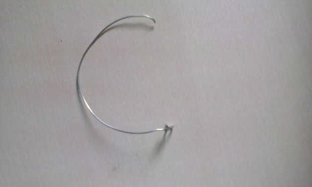 Hacer 2 bucles de alambre como se muestra arriba y caliente pegamento en la tapa transparente del"". Asegúrese de que su cola estos lazos diametralmente para que la "tapa" puede colocarse en ellos.
