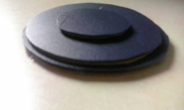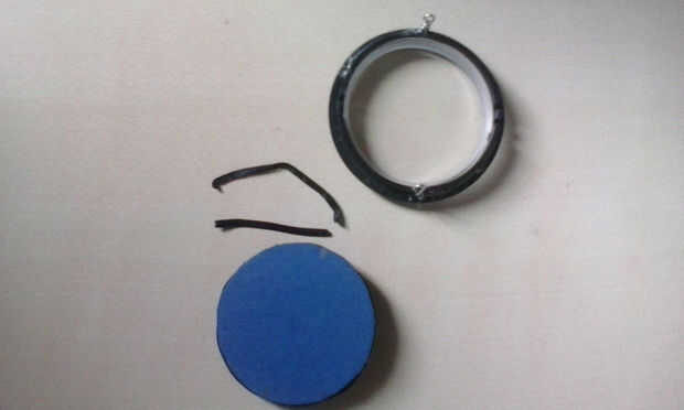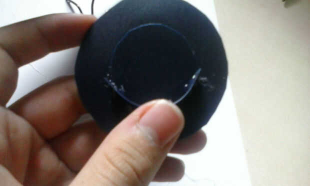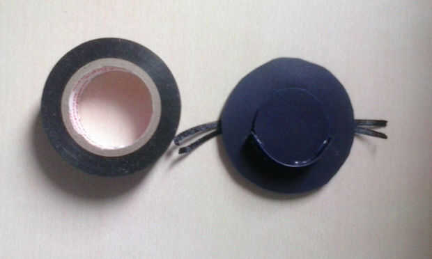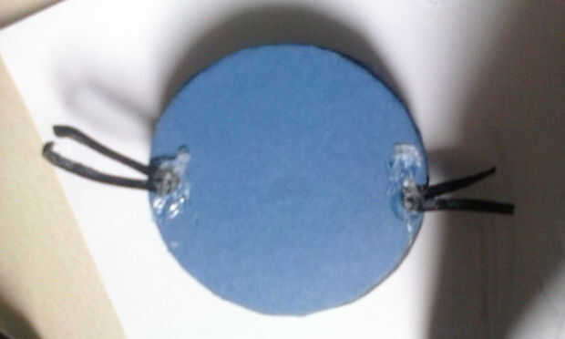 En la parte posterior del círculo inferior pegar 2 stips de cordon (que poder de obligar a los bucles de alambre) y cubrir todo con cinta aislante negra.