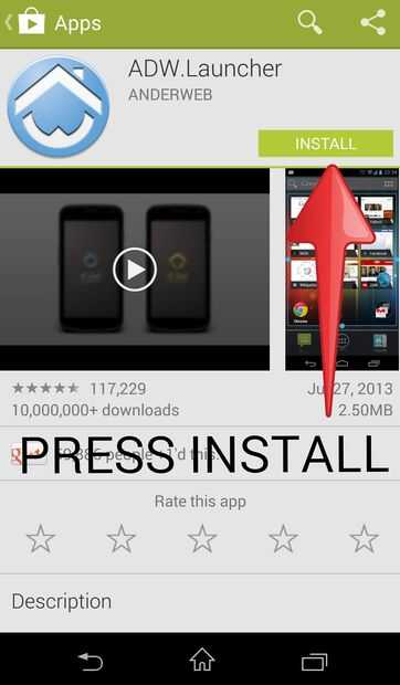 EN PRIMER LUGAR ENCONTRAR LA APLICACIÓN PLAY STORE ((PODRÍA NO ENCONTRARSE EN LA PANTALLA PRINCIPAL)) Y DE ABRIRLO... OK AHORA YA HAN ABIERTO SU PLAY STORE LA BÚSQUEDA PARA "ADW LAUNCHER"... DEBE SER LA PRIMERA APLICACIÓN DE LOS RESULTADOS DE LA BÚSQUEDA:)... AHORA DESPUÉS DE QUE USTED ENCUENTRA HAGA CLIC EN INSTALAR Y ACEPTAR... QUE esperar a descargar & instalar...: D