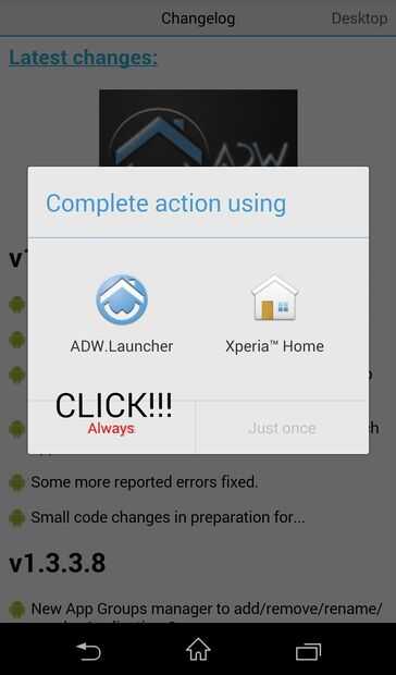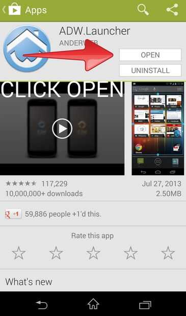 OK :) ASÍ QUE DESPUÉS DE INSTALAR EL ADW LAUNCHER LA APLICACIÓN SIMPLEMENTE HAGA CLIC EN ABRIR Y USTED SERÁ LLEVADO INMEDIATAMENTE A LA PÁGINA DE INFO DE LANZADORES DE ADW... SALIDA SÓLO PRESIONE HOME Y YOULL PEDIRÁ CON UNA DECSISION QUE ELIJA SU APLICACIÓN POR DEFECTO DE LOS TELÉFONOS O EL ADW LAUNCHER... HAGA CLIC EN LA OPCIÓN ADW N PRENSA SIEMPRE...
