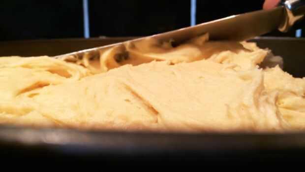 Batir la mantequilla y el azúcar juntos antes de añadir los huevos uno a la vez. Mezclar la harina y el polvo de hornear y cernir a la mezcla. Para terminar, añadir la vainilla y la leche. Separar la masa en dos y hornee a 175 grados centígrados durante 30 minutos.