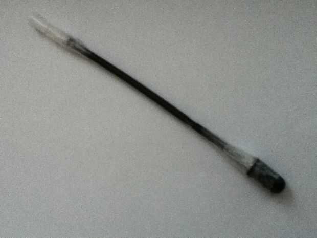 Sacar el tubo de tinta de la pluma, graba algo en la punta y el extremo para que se vea mejor (y por lo tanto no derramarse la tinta).