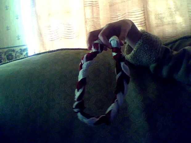 2. trenzar las tiras (tiras de 2 por sección) y deja suficiente tie fo en un nudo