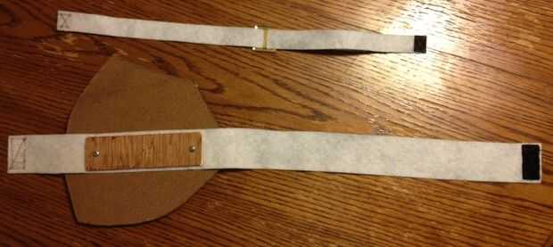 Correa: Cortar un cinturón de 1 pulgada de ancho para ir alrededor de la cintura (dejar espacio para colocar Velcro para fijarlo con). Deslice la hebilla y luego fijar la cinta de Velcro. Tuve la cáscara y del palillo que tipo de Velcro, pero también funcionó una costura en forma de "x" a través de cada pieza en el cinturón y el marco para asegurarse de que permanecía en el lugar. A continuación, corte un lazo de 1 pulgada de ancho cinturón, asegurándose de que es lo suficientemente grande como para caber su espada de elección a través de. Sólo cosido de un lado de mi presilla para el cinturón, llevó a cabo el otro lado, se deslizó la espada hacia adentro y hacia afuera para asegurarse de que se ajuste, luego coser el otro lado donde había sostuvo. (Asegúrese de poner el lazo de correa en el lado derecho de la correa!!!! Joven Link es zurdo).