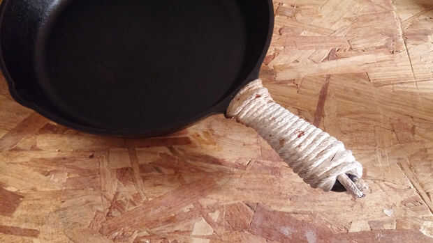 Este es el viejo método que probé. Envuelto dos veces una cuerda alrededor de la manija y lo ató apagado en el final. Caliente el sabio fue un gran método, pero al final de la empuñadura donde el mango todavía alcanzó su punto máximo hacia fuera hacía mucho calor y cogería la mano de vez en cuando. La cuerda no era horno y contiene un polímero.