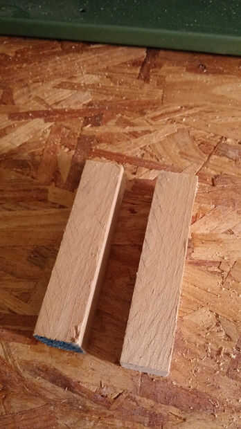 Cortar un trozo de madera lo suficientemente grande para acomodar el mango. Sólo tenía piezas estrechas, así que corte algunos pegan.