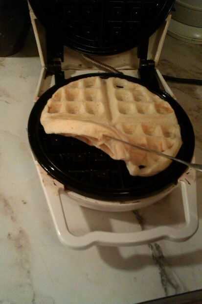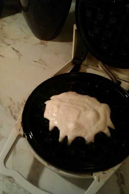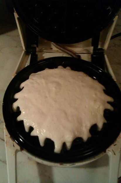 Que la mezcla difunda al borde antes de cerrar la waflera. Diferentes planchas para gofres llevará más o menos masa. No llene demasiado difícil de limpiar y desordenado para arrancar. Espere hasta que la masa se extiende bien. Luego cerrarla. Esperar... Esperar... Esperar... adiós puede olerlo y luego levante la parte superior y una galleta mágica aparecerá.