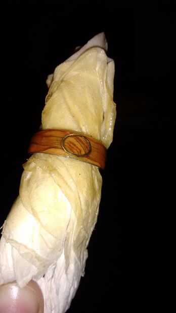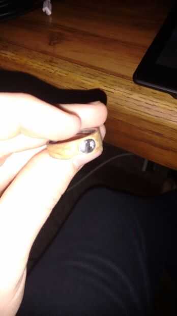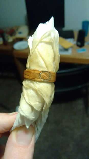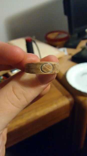 ~ Primero, pulir el anillo lo más suave que permite que el papel de lija, descendiendo lentamente de un grano más grueso que un grano más fino. Me detuve en grano 320. Asegúrese de no de la arena de la capa delgada de madera!