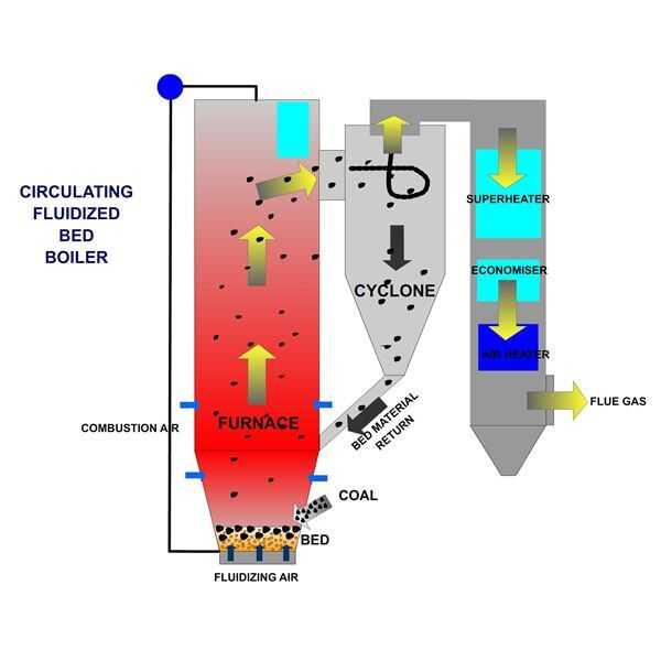 El proceso de combustión de lecho fluidizado consiste en combustibles sólidos en la suspensión hacia arriba chorros de aire durante el proceso de combustión. La ventaja que tiene de la FBC es que facilita el quemar combustibles que son difíciles de encender como desechos de mina de carbón y coque de petróleo.