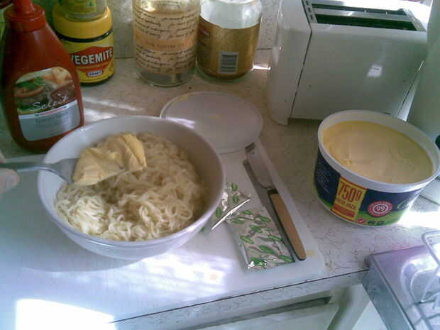 Dar a los tallarines una buena cobertura con la mantequilla que le da a los fideos algún sabor extra... de mantequilla
