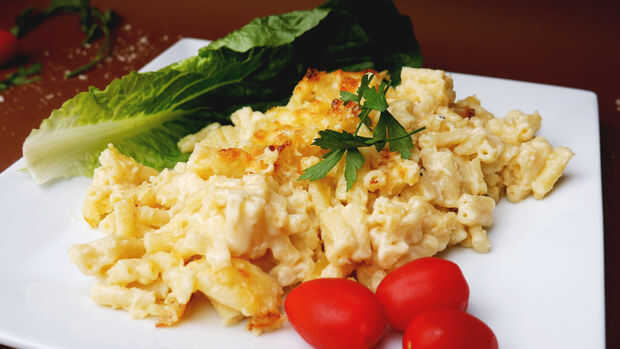 ya todos sabemos macarrones y queso es comida, pero para una verdadera cazuela de palo a sus costillas esta receta ajusta a la ley! Macarrones y queso con abundante jamón y espinacas, con queso parmesano y al horno para que la capa superior es un poc