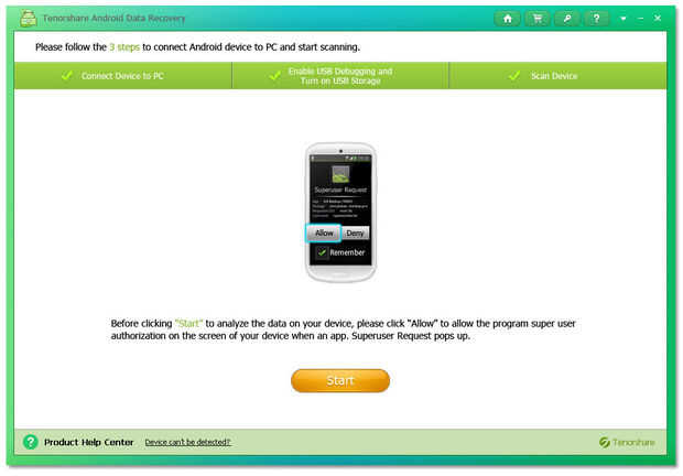 Luego haga clic en "Inicio" en el softare y seleccione su tipo de archivo que necesita recuperar. En general, Foto y video recuperación no necesitan root. A continuación, seleccione el tipo de datos que desea recuperar.