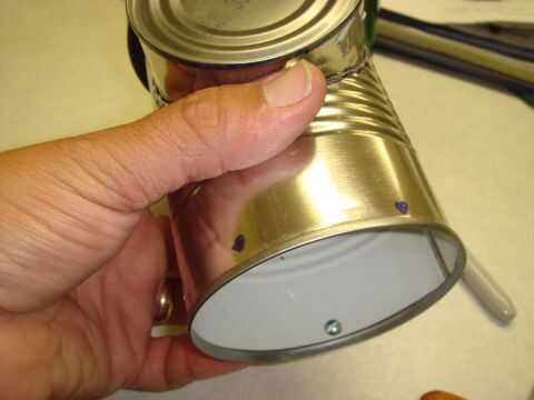 Ahora coloque un tornillo desde dentro en el orificio en el frente de la lata y apretar una tuerca.