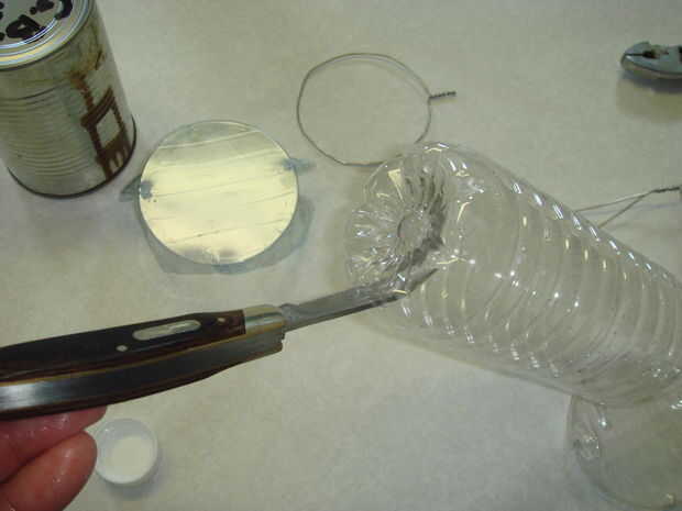Después de cortar el plástico consigue una de sus latas estándar y súbalo hacia abajo la parte cerrada hacia arriba.