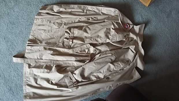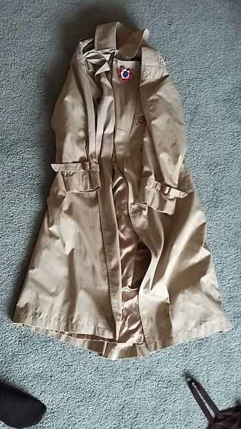 consegui esto fuera de ebay para aproximadamente £3,00 y envío de £1,50, y es una marca cara y una extra grande zamarro, como mujer trench abrigos no alcanzan el piso (¿por qué?!). I luego deagged arriba y abajo mi jardín a ensuciarla y hacer parecer peor para el desgaste. Trabajó. No quería romper porque parecía demasiado falso. También añadí una escarapela.