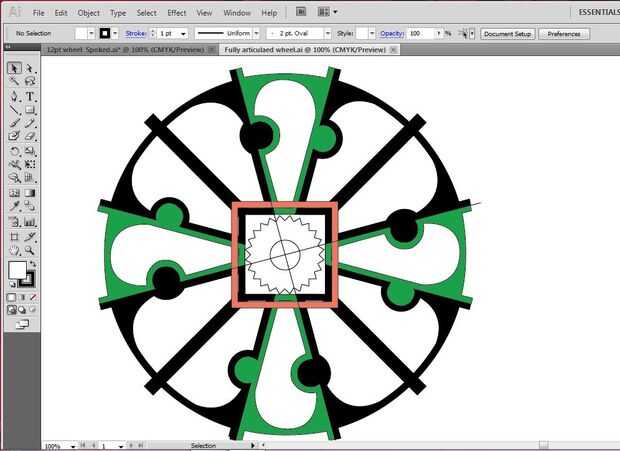 Suerte hacia fuera en la parte de creación de equipo de este proyecto de dos maneras: primero, encontré una página de creadora de engranajes en línea (http://woodgears.ca/gear_cutting/template.html) para no tener que geométricamente de impuestos yo en illustrator para crear caminos. En segundo lugar, el aparato fue operada de la mano - esto elimina me tienen que ver las matemáticas en qué velocidades, la velocidad del motor, etc., serían necesarios para alcanzar el equivalente rotacional de 24 FPS. Simplemente deje que el mango de la manivela hasta que ven lo que parece una estatua estática bailando en lugar cada usuario. Mi única contribución en este caso fue "cuando un equipo grande convierte un pequeño engranaje = velocidad" no queremos que nadie brazo cae antes de llegar a la velocidad de giro adecuada! Una vez que todas las partes de la rueda, engranajes, bielas y elementos de apoyo fueron presentadas, una rápida importación de los caminos en mi software 3D y listo... piezas!