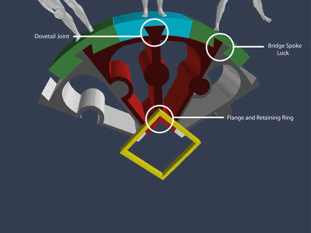 También he añadido una pestaña en el extremo más pequeño de cada pedazo de tarta de rueda. Éstos entonces ser bloqueados junto con una anillo de retención de la Plaza.