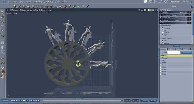 Entonces importados estas estatuas en mi otro programa y coloca alrededor de la circunferencia de la rueda, cada uno en el pin de habla apropiado. Algunas matemáticas rápido me dijeron si tengo 12 artículos va alrededor de una rueda de 360 grados, cada uno tendría que ser girado 30 grados más que el anterior (estatuas de 12 x 30 grados = 360 grados) parece estar de pie plano patas en el borde de la rueda. Una rápida Nota - Asegúrese de que tiene todo bien en la posición antes de comenzar a importar estatuas - mina eran bastante intenso desde un punto de vista de la geometría (las partes) para mover cosas alrededor de una vez que están todos en la escena es bastante procesador intenso!