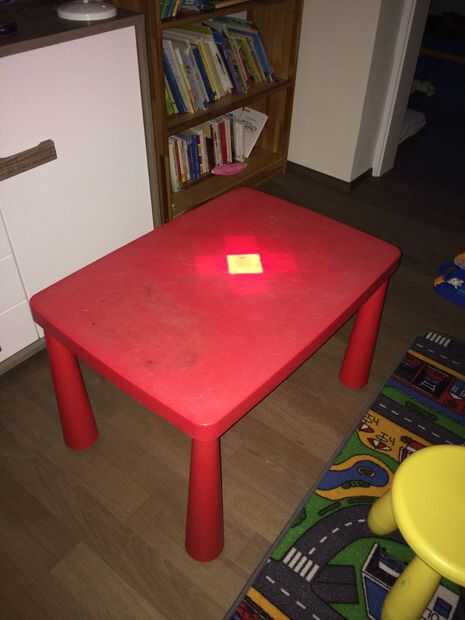 una vieja mesa Mammut de IKEA que estaba muy sucio (y sigue siendo)