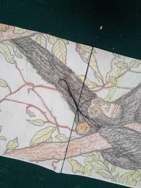 Puede coser cualquier forma que quieras, mientras sostiene las páginas. Por lo general coser algunas puntadas grandes de corriente a través de la revista y atar en la espalda y dejar alguna cadena extra para que puede atar en la parte delantera, si tiene sentido. Por supuesto, fácilmente podría agregar un botón a este proyecto, y se puede utilizar a todo tipo de materiales y papeles, no viejos hojas para colorear!