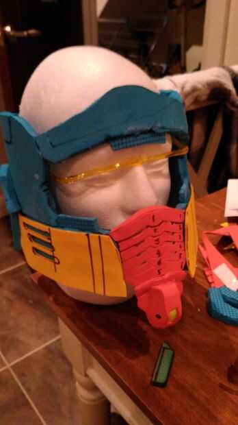 Esta es la parte difícil. Conseguir las piezas de la boca parece correcta. He mostrado el proceso de medición y el diseño que utilicé para cortar hacia fuera. Pero lo haré de esto hizo 5 o 6 veces al menos. Mi razón era que tenía que modificar la longitud de ambos lados de la máscara. Mi hijo lleva gafas por lo que había enseguida estas obtendría más tarde en el ocular. Para solucionar esto yo cortar la cabeza de espuma a su tamaño exacto y agrega el marco de los vidrios de Pajitas de plástico calentado y en forma. Esperemos que no tendrás tema si recrear esto.