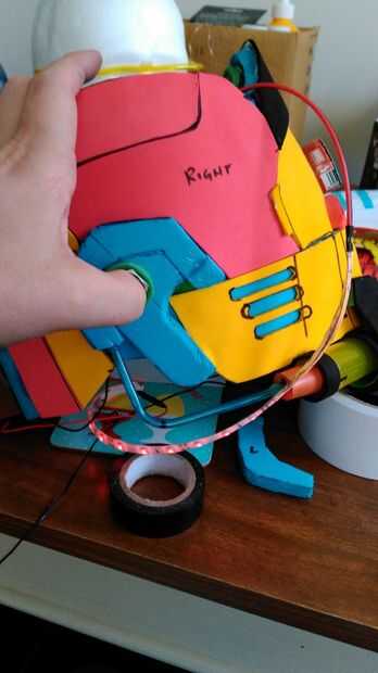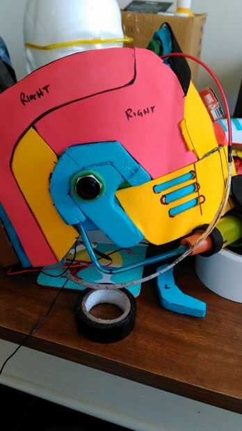 Me decidí por una luz hacia arriba el interruptor para encender las luces. Ninguna otra razón otra que pensé sería cool. Decidí poner el interruptor en el lado de la cabeza por el oído. Esto fue debido a esto fue la salida más alejada de la cabeza.