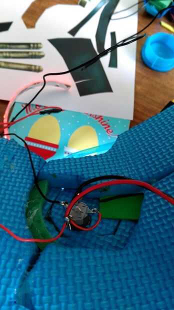 Una vez que el botón fue pegado en su lugar que puse sobre lo de cableado también la batería de 9 voltios y el LED de la tira.