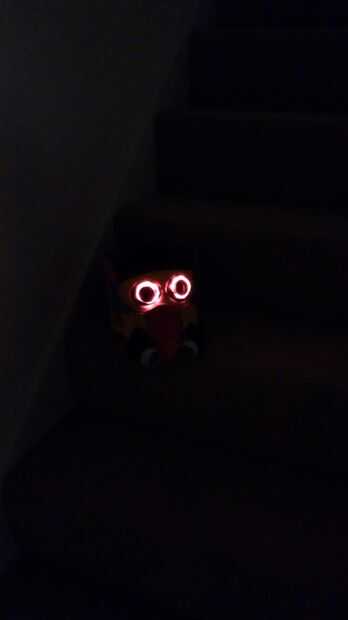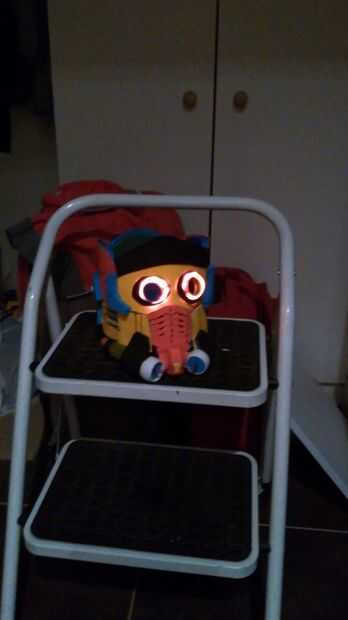De esta manera cuando él mira a través de los agujeros del ojo mi costumbre hijo ver directamente los LEDs.