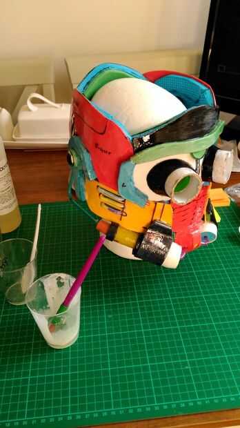 Siguiente capa la máscara toda con pegamento de PVA con un cepillo.