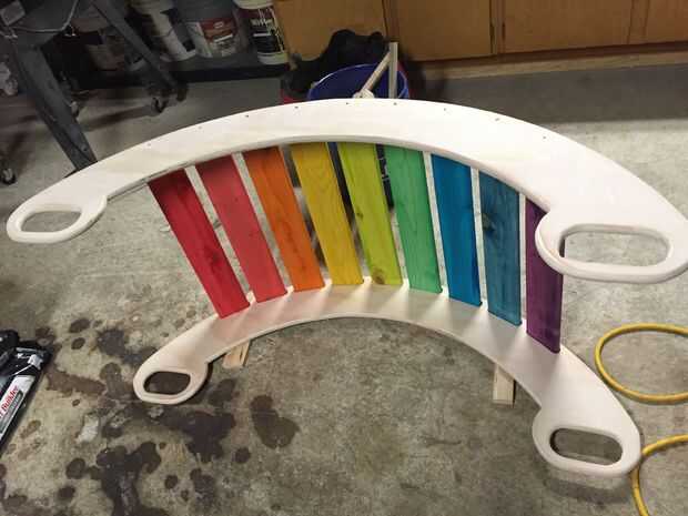 Este eje de balancín del niño estaba muy desgastada. Tenía un eje de balancín roto y el asiento era un mimbre tejido que estaba pudriéndose. Yo básicamente lo redimido. He quitado el asiento viejo y había hecho un nuevo eje de balancín. Entonces lija