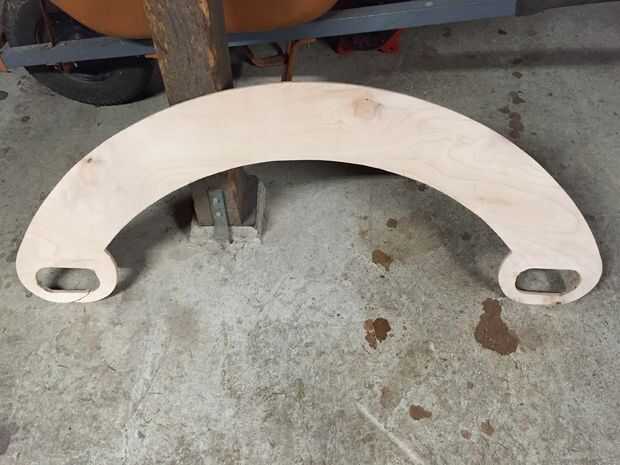 Para hacer la plantilla saqué un patrón en una hoja de 1/4 de 1/2" madera contrachapada del abedul. Usé las placas, las latas y un pedazo largo de material con un agujero perforado en el extremo para obtener las curvas y los mangos de la manera que yo quería. Ya que este fue mi primer intento confiaba en que podía hacer esto y no escuchar a los blogs que leo sobre utilizando el software de redacción e impresión en una tienda de oficina en casa. En retrospectiva, esto habría sido más fácil. Te sugiero ir a esta ruta. Después de que tuviera el diseño de la manera que quería, recórtalo con una sierra de calar entonces formado el patrón final con una escofina de madera y lijadora. Estoy incluyendo este paso ya que era mi idea para poder reproducir este proyecto para los regalos en el futuro.