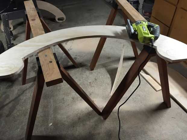 Cuando tenía ambos lados trazadas sobre mi madera que era tiempo de áspero hacia fuera. Utilicé una sierra de calar para quitar exceso de madera alrededor de mi proyecto. Salí de entre 1/8 y 1/4 de una pulgada fuera de las líneas trazó con mi plantilla. Este extra se eliminará en el siguiente paso.