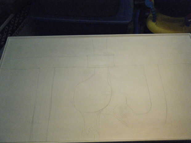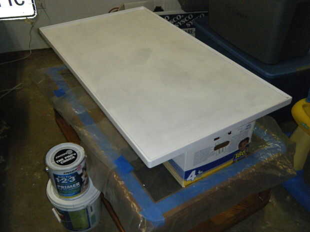 Una vez totalmente seco el pegamento lija la parte superior entera y luego llegó el momento para la cartilla. En este punto usted sólo podría pintar el color final y estaría muy bien pero quería un acabado liso todo y un par de capas de imprimación y un lijado fino te dará un resultado final mucho mejor. Después de la segunda capa de imprimación se había secado hice un pequeño bosquejo de diseño para asegurarse de que todo se mira a la derecha.