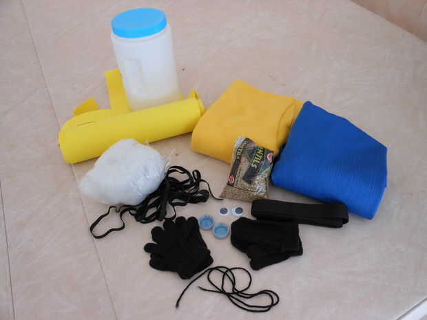 * 1/2 yarda de paño grueso y suave amarillo u otra tela elástica suave. (2,50 Walmart una yarda. = $1,25)