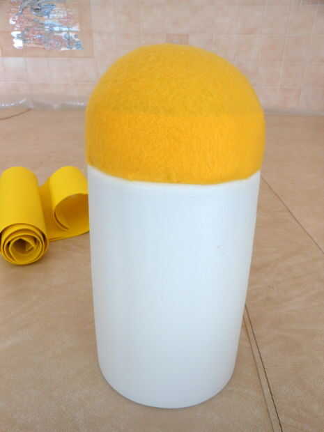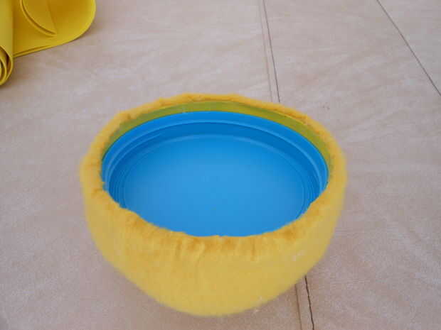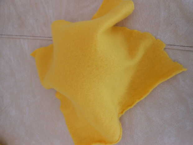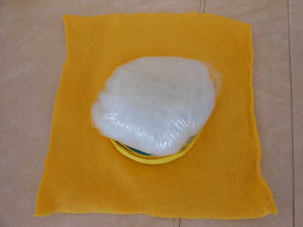 Luego te corte una pieza cuadrada de su lana amarilla que está sobre dos veces tan ancho y dos veces tanto como su tapa.