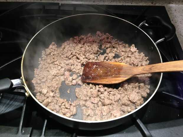 Seguir dividiendo y revolviendo hasta que la carne esté cocinada: la carne se pondrá más oscuro (en este caso, irá de color rosado a marrón.) Tiene, una vez la hornilla a fuego medio-bajo. Seguir removiendo la carne hasta que chisporrotee más reservado. Se trata de inmediato si usted usa una estufa de gas, pero tomará aproximadamente 1 minuto si usted usa una estufa eléctrica.