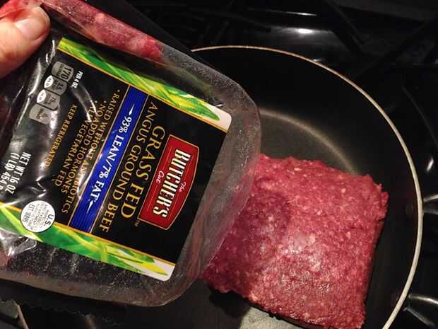 Antes de que la sartén se caliente, abrir el paquete que contiene la carne de tierra y coloque en el sartén. Inicie con su espátula no metálica, dividir en trozos más pequeños.