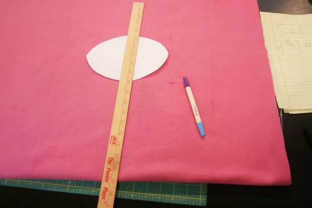 Estas dos marcas indican los bordes de la plantilla de oval. Incluí la misma plantilla como lo hice para el snuggie adulto, que lo quiere reducir a un tamaño más apropiado (80% en este caso).