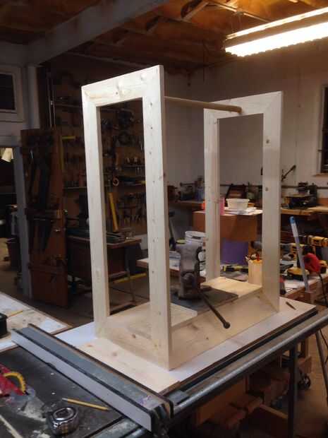 No entro en este proyecto con los planes de real claros, sólo una idea general. Empecé haciendo las dos partes fuera barato Pino 1 x 4. Los lados son de 18" de ancho por 42" de altura.