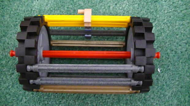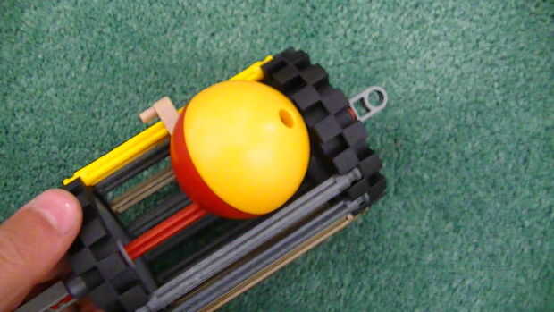 Muchos constructores de maquinaria de la bola (¡ incluyendome!) utilizan la misma idea básica de un elemento llame a un balancín. Para este elemento, una bola rueda hacia adelante y hacia atrás en la pista curva hasta que se detenga. Entonces el dump
