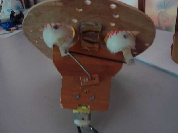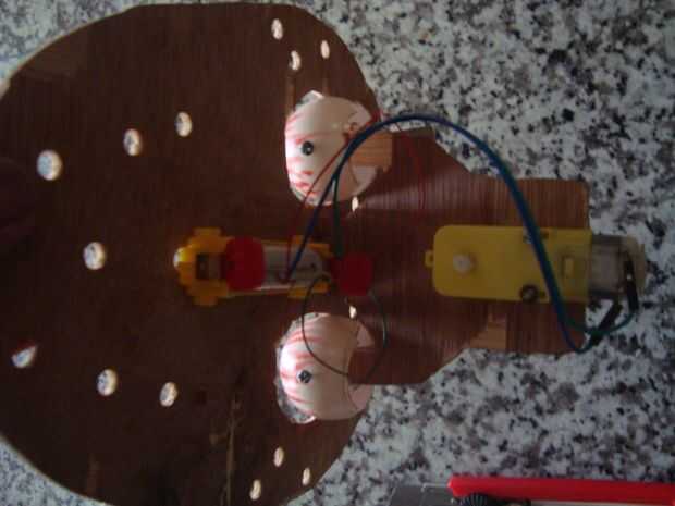 Después de todo es instalar, tener una longitud de cable de alambre de 2 pieza a la distancia del globo ocular por lo que la longitud del alambre coloca globos oculares tanto hacia delante y conecte un cable desde un ojo con el Rotary motor ajustar la longitud del cable con motor, trate de marcar manualmente si no se produce cuando el reloj mueve ojos girando y entonces fue un partido largo. intente ejecutar el motor mediante el uso de la batería cuando ya está funcionamiento avanzado a la siguiente etapa.