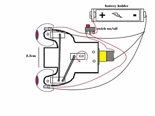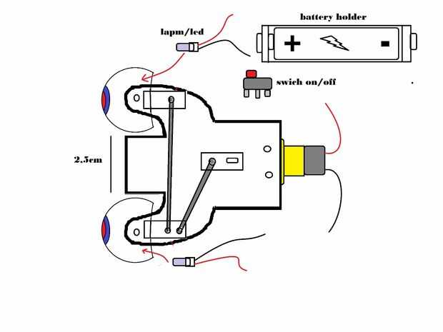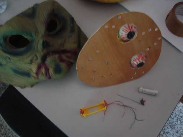 para la etapa siguiente, coloque la lámpara pequeña o entrada de Led en ojos Conecte el cable al swich e interruptor y portapilas de titular venció inteligente pegar en la cara de popa de la parte