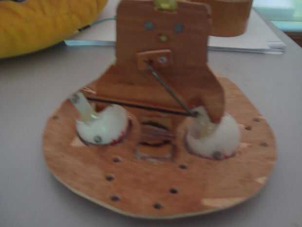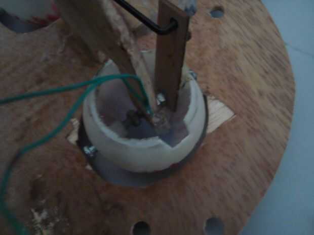Ahora creamos un activador mecánico de nola de ojos, es muy simple, primero cortamos 1/3 de pelotas de ping pong, crear un agujero en la mitad superior de la mesa de ping pong bolas rompieron a través de la tapa a bottom.install las pelotas de ping pong en parte la madera soporte motor, siga todos los pasos como en fotos.