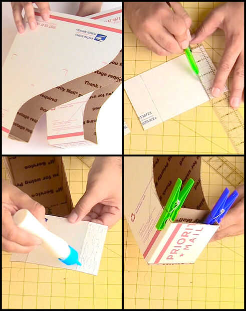 Pegar las aletas en el interior de la boca de la caja para crear un área para lápices