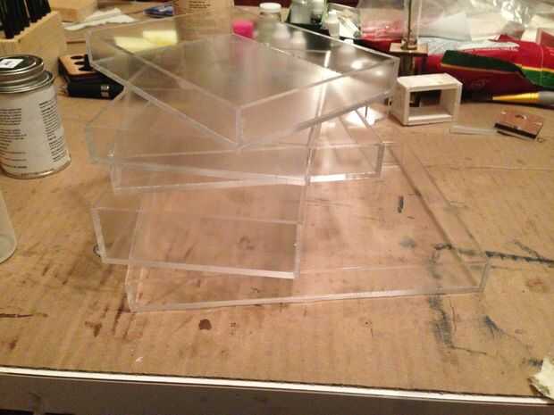 Pega! Esta es probablemente la parte más delicada. Usé cemento acrílico de Tap Plastics y también compraron una botella del aplicador. Al principio no pensé que necesitaba la botella del aplicador, pero este material funciona como el agua y definitivamente necesita para controlar cuánto se utiliza.