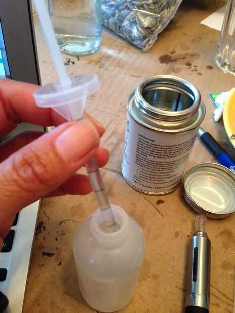 Llene la botella del aplicador con el cemento acrílico. He usado una jeringa (pensaba que sólo podía usar la jeringa para aplicar directamente al material pero chorros hacia fuera de manera demasiado).