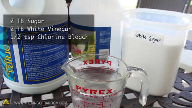 Para una idea final, usted puede ayudar a conservar sus flores frescas, agregando azúcar, vinagre y un poco de lejía al agua caliente.