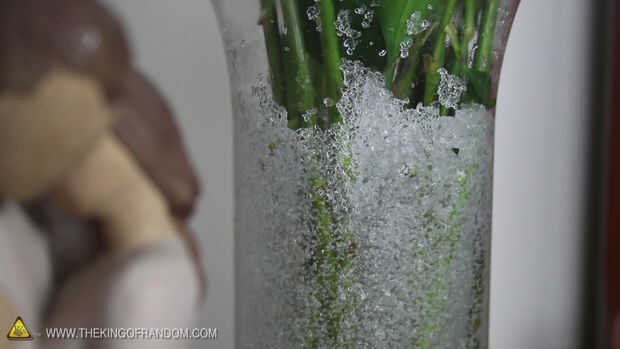 Esto creará una comida casera de flor, y al agregar el polvo de aguanieve, verás que absorbe la solución y crece lentamente hasta 60 veces su tamaño.
